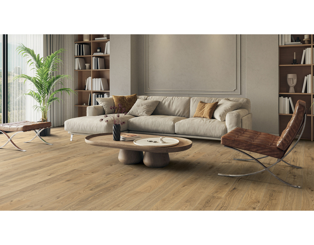 Unsere eindeutige Nr. 1 ist die Landhausdiele Eiche Sauvage. Seit der Entwicklung liegen weit mehr als 5 Mio. Quadratmeter in den Wohnungen und Häusern unserer Kunden. Eine echte Erfolgsgeschichte. Diese schreiben wir fort. Die zusätzlich angebotene Variante mit brauner Spachtelfarbe verleiht dem Boden eine völlig neue Erscheinung. Der ideale Boden für alle, die einen lebhaften Boden wünschen, der trotzdem dezent im Hintergrund bleibt.