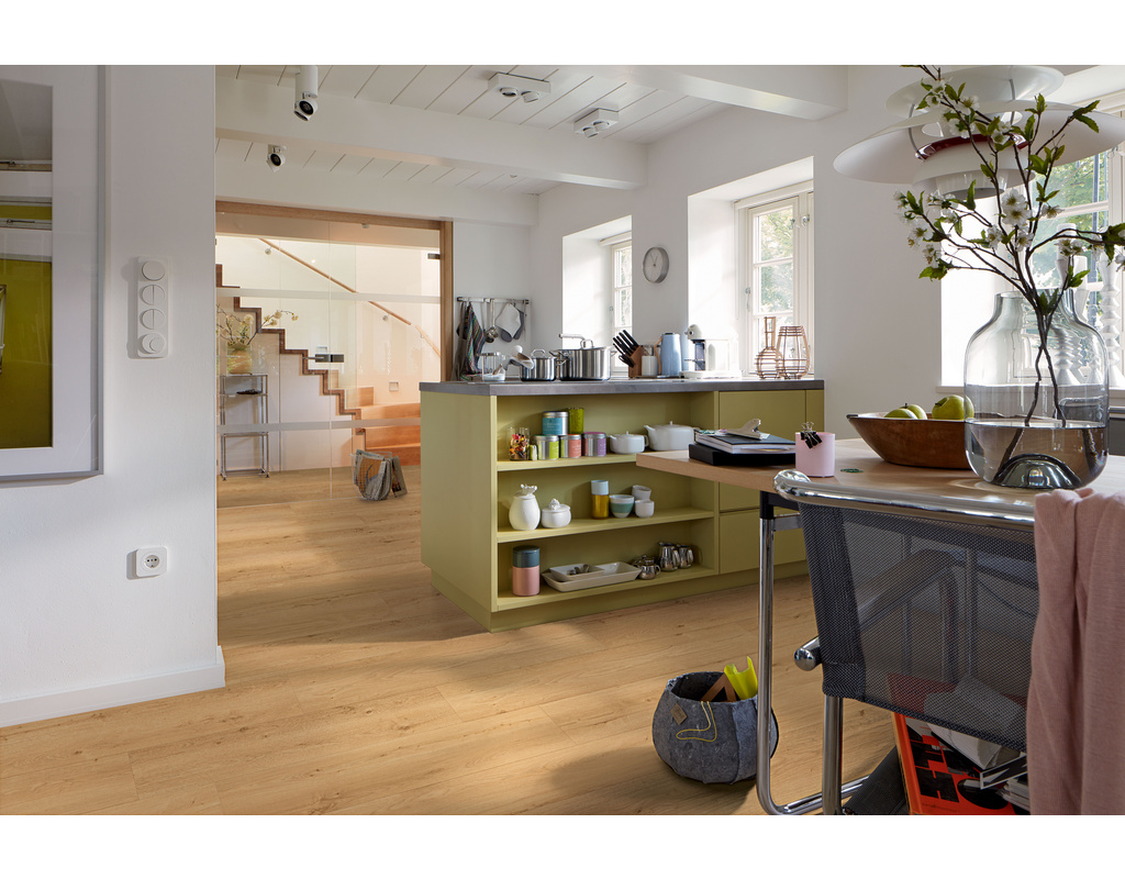 Der PVC-freie MeisterDesign. pro überzeugt mit nur 2,5 mm Aufbauhöhe als flacher, wasserfester Designboden für Bad, Flur und viele Objektbereiche. Die mehrschichtige P-Tec-Strong-Oberfläche mit elastischer PP-Spezialfolie und ultramatter Excimer-Lackierung sorgt für hohe Widerstandsfähigkeit und eine moderne, natürliche Optik. Entwickelt für die vollflächige Verklebung. Das Gesamtprodukt hat einen Recyclinganteil von 15%.