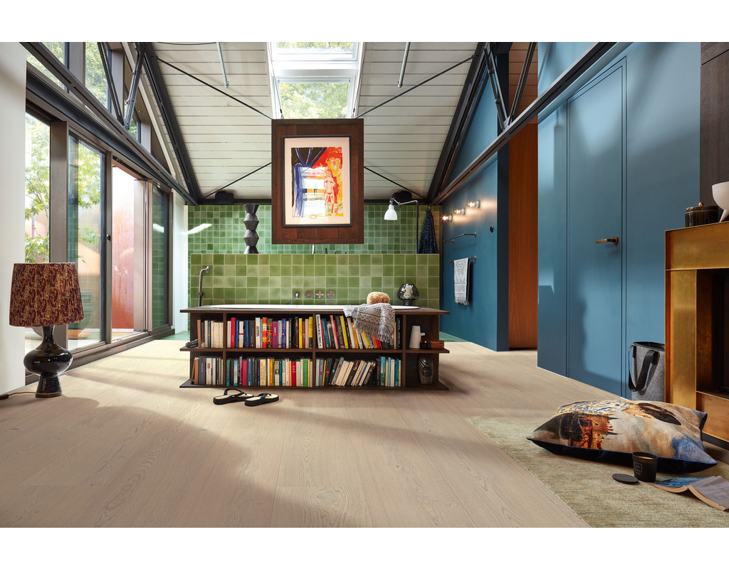 Mit seinem Schlossdielenformat kommt der Lindura-Holzboden besonders in großen Räumen perfekt zur Geltung. Der besondere Produktaufbau macht Lindura extrem strapazierfähig und somit auch für viel genutzte Wohnbereiche oder auch Gewerberäume zur gelungenen Bodenlösung. Durch das ultramattlackierte Finish, das jede einzelne Pore benetzt, wirken die Dielen nicht nur extra edel und natürlich, sondern werden auch besonders pflegeleicht, fleckenunempfindlich und resistent gegen Mikrokratzer (kleine Kratzer in der Lackoberfläche, die nicht bis zur Echtholzdeckschicht durchdringen).
