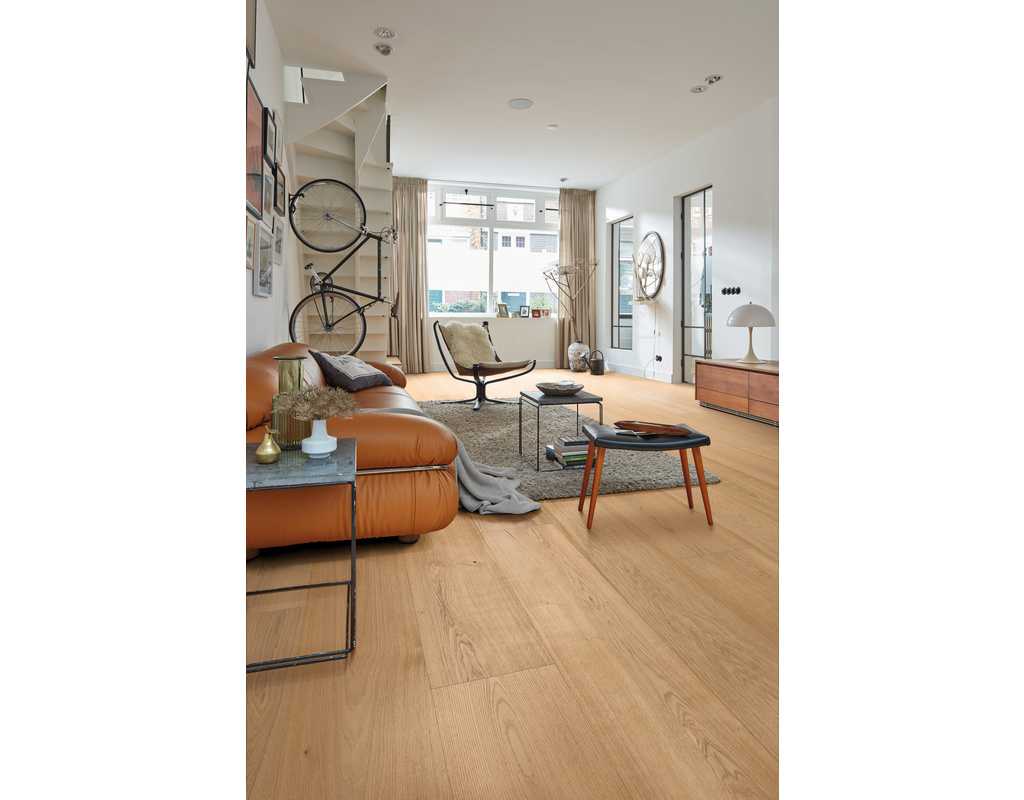 Mit seinem Schlossdielenformat kommt der Lindura-Holzboden besonders in großen Räumen perfekt zur Geltung. Der besondere Produktaufbau macht Lindura extrem strapazierfähig und somit auch für viel genutzte Wohnbereiche oder auch Gewerberäume zur gelungenen Bodenlösung. Durch das ultramattlackierte Finish, das jede einzelne Pore benetzt, wirken die Dielen nicht nur extra edel und natürlich, sondern werden auch besonders pflegeleicht, fleckenunempfindlich und resistent gegen Mikrokratzer (kleine Kratzer in der Lackoberfläche, die nicht bis zur Echtholzdeckschicht durchdringen).
