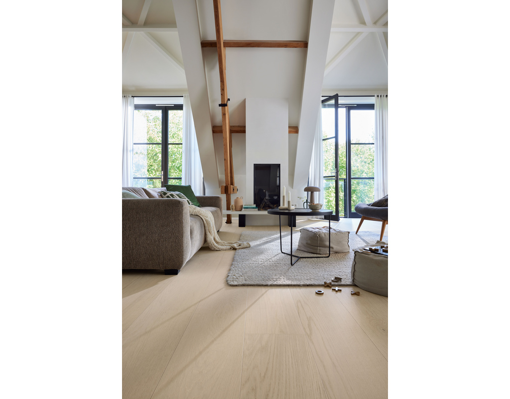 Mit seinem Schlossdielenformat kommt der Lindura-Holzboden besonders in großen Räumen perfekt zur Geltung. Der besondere Produktaufbau macht Lindura extrem strapazierfähig und somit auch für viel genutzte Wohnbereiche oder auch Gewerberäume zur gelungenen Bodenlösung. Durch das ultramattlackierte Finish, das jede einzelne Pore benetzt, wirken die Dielen nicht nur extra edel und natürlich, sondern werden auch besonders pflegeleicht, fleckenunempfindlich und resistent gegen Mikrokratzer (kleine Kratzer in der Lackoberfläche, die nicht bis zur Echtholzdeckschicht durchdringen).