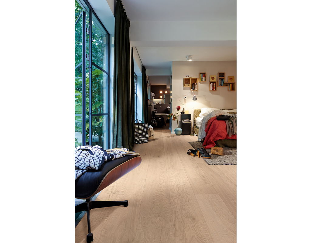 Mit seinem Schlossdielenformat kommt der Lindura-Holzboden besonders in großen Räumen perfekt zur Geltung. Der besondere Produktaufbau macht Lindura extrem strapazierfähig und somit auch für viel genutzte Wohnbereiche oder auch Gewerberäume zur gelungenen Bodenlösung. Durch das ultramattlackierte Finish, das jede einzelne Pore benetzt, wirken die Dielen nicht nur extra edel und natürlich, sondern werden auch besonders pflegeleicht, fleckenunempfindlich und resistent gegen Mikrokratzer (kleine Kratzer in der Lackoberfläche, die nicht bis zur Echtholzdeckschicht durchdringen).