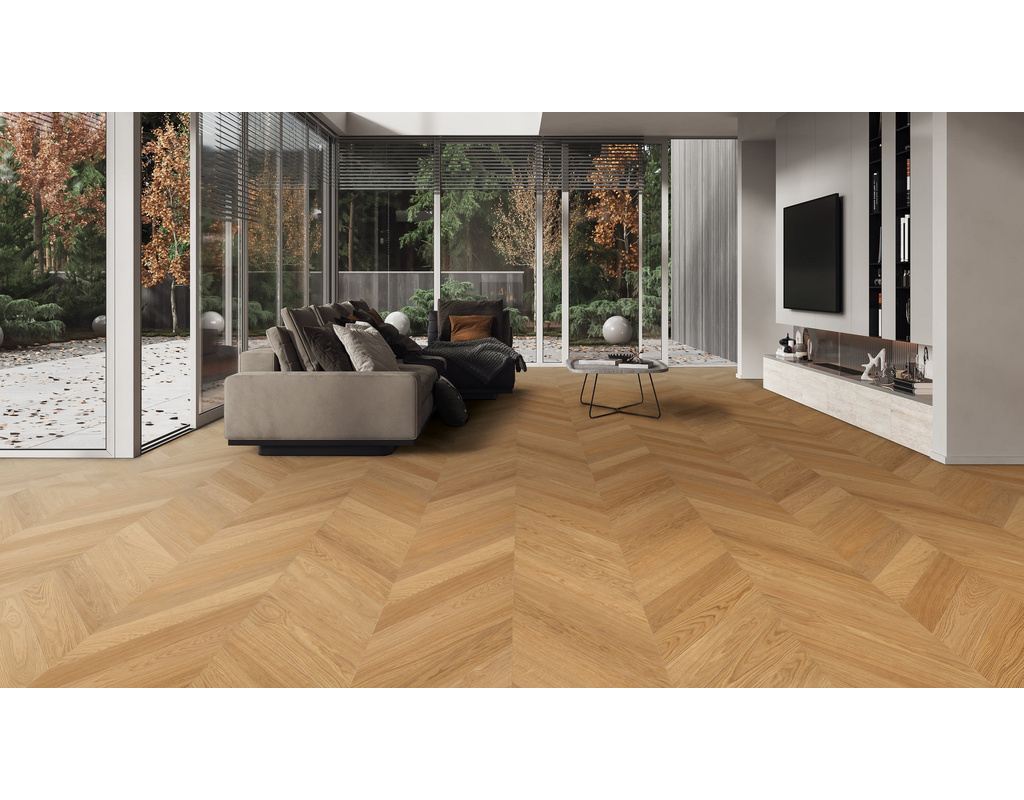 Produktinformationen "PARKETTMANUFAKTUR NF Chevron 4V Eiche Selectiv str. oleovera 45 Grad 740x140x11,3mm"