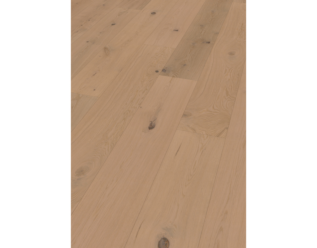 Ein Wohngefühl wie bei von und zu: Unsere Eichen-Schlossdielen im Format 2.375 x 270 mm kommen vor allem in größeren Räumen zur Geltung. Wie bei den Landhausdielen, unterstreicht auch hier die extramatte Optik die natürliche Anmutung der europäischen Eiche