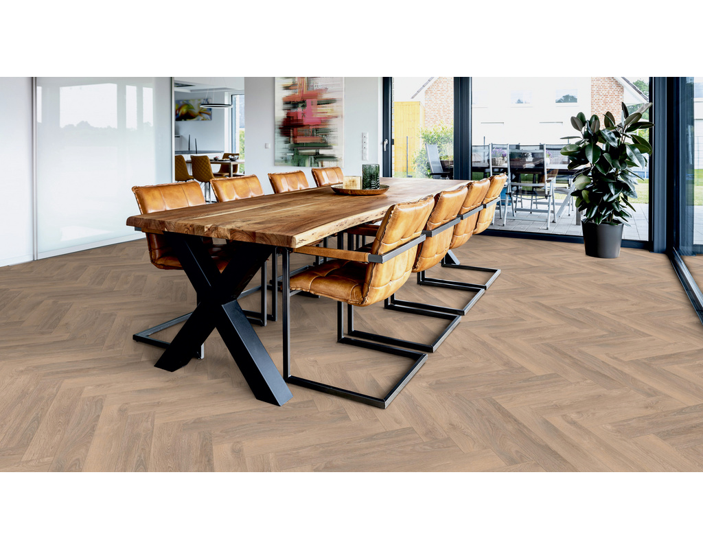 Mit der Herringbone Collection bieten wir Dir neun Dekore im eleganten Format 665 x 133 x 10 mm für einen edlen Auftritt. Die Eichenholz-Dekore sorgen dabei für ein abwechslungsreiches Farbspiel - die Betonung des Fischgrät-Musters wird durch die umlaufende V-Fase verstärkt. Und das Besondere: Do-it-Yourselfer können diesen beeindruckenden Boden durch die SmartConnect HB Verbindung leicht selbst verlegen!