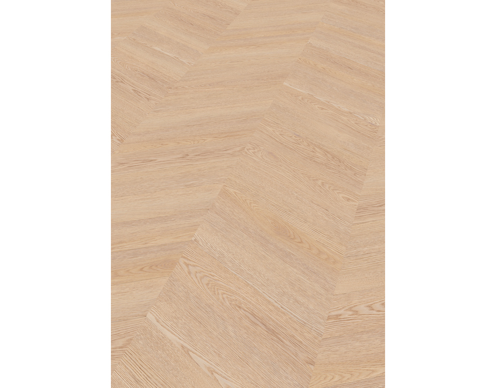 Neu bei Soya-Vinyl: Chevron Das Chevron-Verlegemuster, auch als Französisches Fischgrät bekannt, zeichnet sich durch präzise geschnittene Dielen aus, deren Enden im Winkel von 60° abgeschrägt sind und an der Schnittkante aufeinandertreffen. Dadurch entstehen perfekt abgestimmte Spitzen, die eine klare, gleichmäßige V-Form bilden. Im Vergleich zum klassischen Fischgrät-Muster, bei dem die Kopfkante der einen Diele auf das Ende der Längskante der anderen Diele im 45° Winkel trifft, wirkt Chevron ruhiger und strukturierter. Diese unkonventionelle Offenheit kommt besonders in modernen oder repräsentativen Einrichtungen zur Geltung.