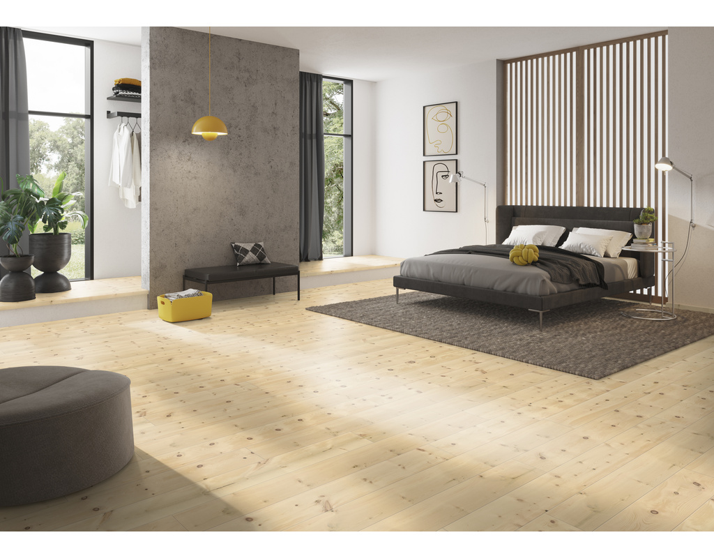 Raue Tradition wird hier spürbar: gehobelte Oberflächen, Gebirgshölzer, Innovo NATUR Öl und stabile powerFIX-Verbindung. Für rustikale Raumlösungen mit echtem Profil.