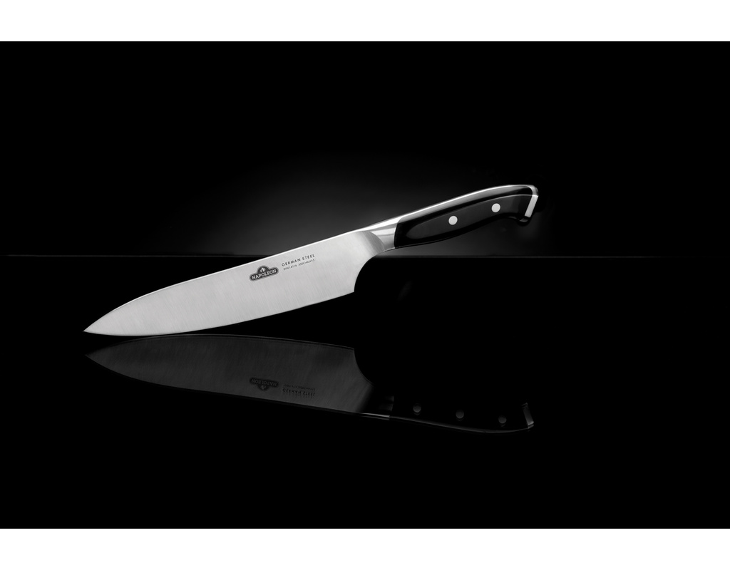 Das vierteilige Napoleon® President Limited Edition Grillbesteck zeigt ein besonders hochwertiges Design aus Edelstahl und mit schwarzen Griffen. Schneiden Sie mit dem Executive Chefs-Messer und Sie werden nie wieder mit einem anderen Messer schneiden wollen. Aus deutschem Stahl gefertigt und messerscharf. Das ideale Allzweck-Messer. Der Grillwender mit Schneidekante und scharfer Spitze ist ideal für Steaks und größeres Grillgut geeignet. Die Grillzange mit praktischem Verriegelungsmechanismus ist ideal für das Hantieren mit feinem, zartem Grillgut. Der Pinsel veredelt Ihr Grillgut mit Hilfe seiner hitzebeständigen Silikonborsten. Das vierteilige Napoleon® President Limited Edition Grillbesteck macht Sie zum Chef am Grill.