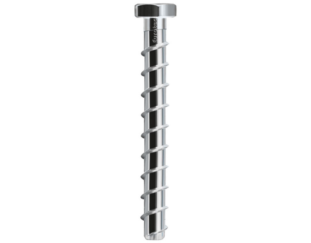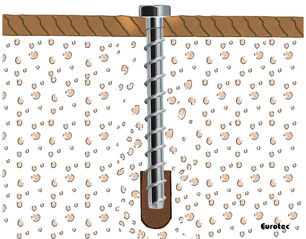 Eine praktische Alternative zum klassischen Dübel Unsere Eurotec Rock-Betonschraube ist geeignet für gerissenen und ungerissenen Beton (Normalbeton C20/25 bis C50/60). Eine Europäische Technische Bewertung für diese Verankerungen ist vorhanden. Die Betonschraube wird direkt in das Bohrloch geschraubt, dazu werden keine weiteren Komponenten benötigt. Das Gewinde schneidet sich beim Einschrauben ein Gegengewinde in den Untergrund. Diese Art der Befestigung ist einfach, zeitsparend und kostengünstig. Die Rock-Betonschraube funktioniert auch in hochfestem Beton der Klasse C50/60 zuverlässig. Garantiert guter Halt wird durch ein besonderes Gewinde, hochfesten Schraubenstahl und ein komplexes Härteverfahren gewährleistet. Vorteile und Eigenschaften Zur Montage keine weiteren Komponenten notwendig Hohe Auszugswerte Geringe Rand- und Achsabstände möglich durch niedrige Spaltwirkung Viele Anwendungsmöglichkeiten durch verschiedene Durchmesser und Schraubenköpfe Zeitsparende und kostengünstige Montage Setz- und Montagevorgang geschieht in einem Arbeitsschritt Hinweise Bohrlocherstellung durch Hammerbohren Setzparameter sind unbedingt einzuhalten Nur geeignet für die Anwendung in Normalbeton C20/25 bis C50/60